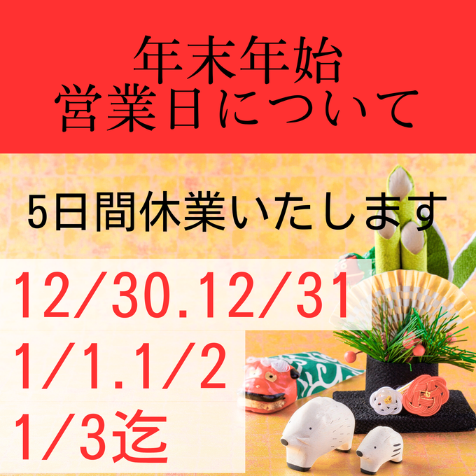 [5日間年末年始休業となります] 12月30日(火), 12月31日( 水), 1月1日( 木),1月2日( 金), 1月3日(土)