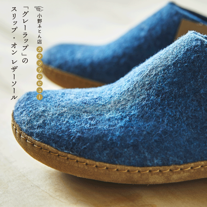 小野ふとん店 スタッフレビュー「グレーラップ」スリップ・オン レザーソール