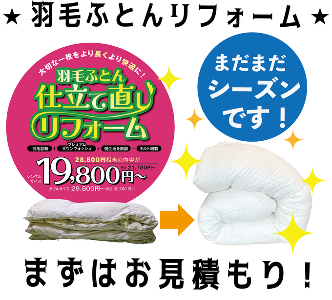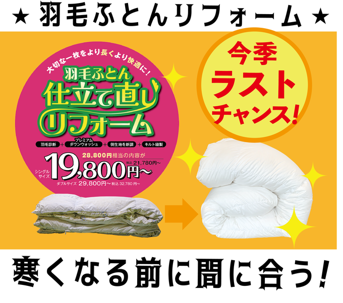2025年8月チラシ情報 寒くなる前に間に合う!【羽毛ふとん リフォーム】ラストチャンス!?
