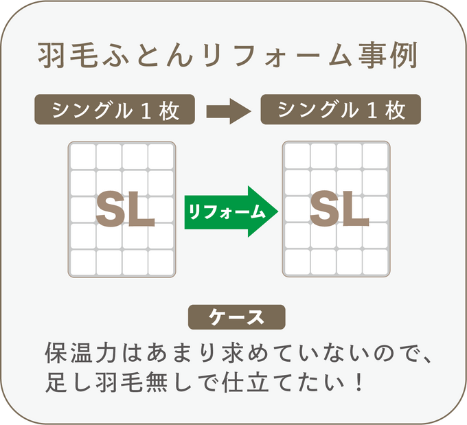 【事例】羽毛ふとんリフォーム【シングル1枚 → シングル1枚】【足し羽毛無し】