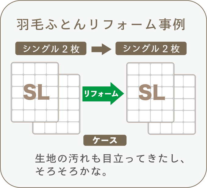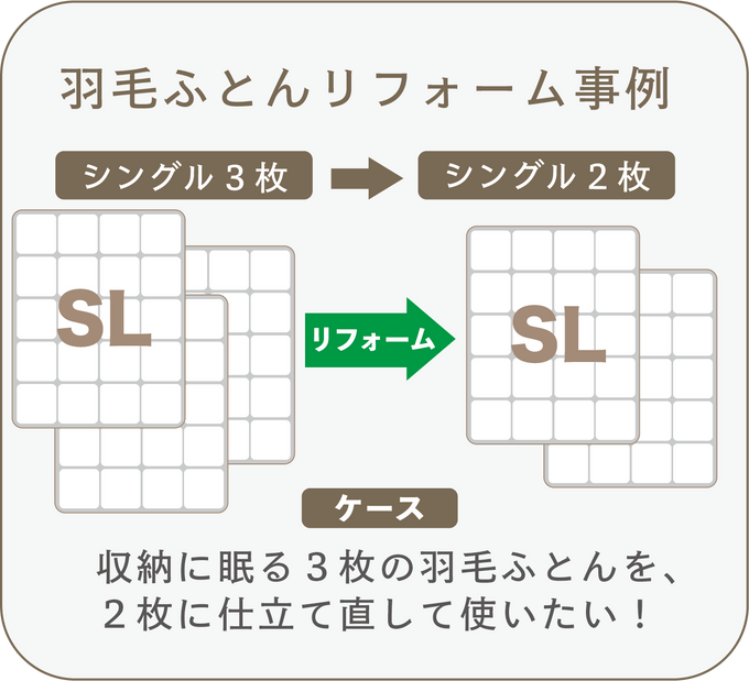 【事例】羽毛ふとんリフォーム【シングル3枚 → シングル2枚】