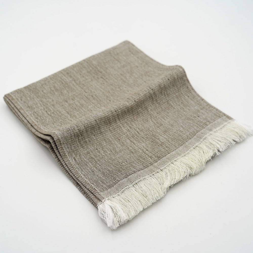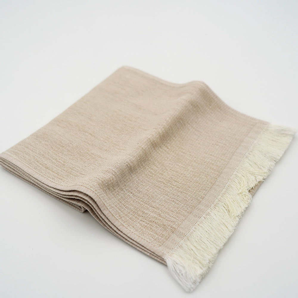 巾が狭く長さも短めなので首に巻いてもかさばりません。シャリ感がありますので、夏場にタオルのように首に巻くと汗を吸ってサラサラ快適です。