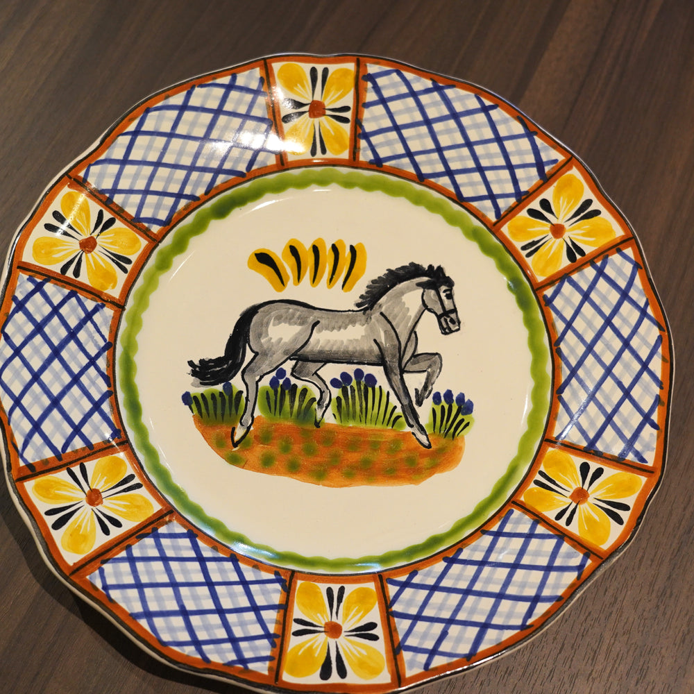 ゴルキー工房で作られた陶器。良質な土が豊富に採れる事から、各地で陶芸が盛んに行われているメキシコ。魅力は独特の色使いと手書きで絵付けされた素朴さ。メキシコの人間国宝とも呼ばれるゴルキー・ゴンザレスの陶器は熟練の職人にのみ許されたリスの毛を使った筆で絵付けが行なわれており、繊細な絵柄が魅力です。美しい色彩とあたたかな味わいのそのマジョリカ焼は、天然素材だけを使用し、すべて手作りで丹念に作られたものです。