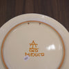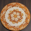 こちらはデザートプレートで大きさは直径約20cmです。シンプルにオレンジ系のみの色付けでかわいらしいプレートです。展示品として使用できるように裏面に2つ穴があけてあります。