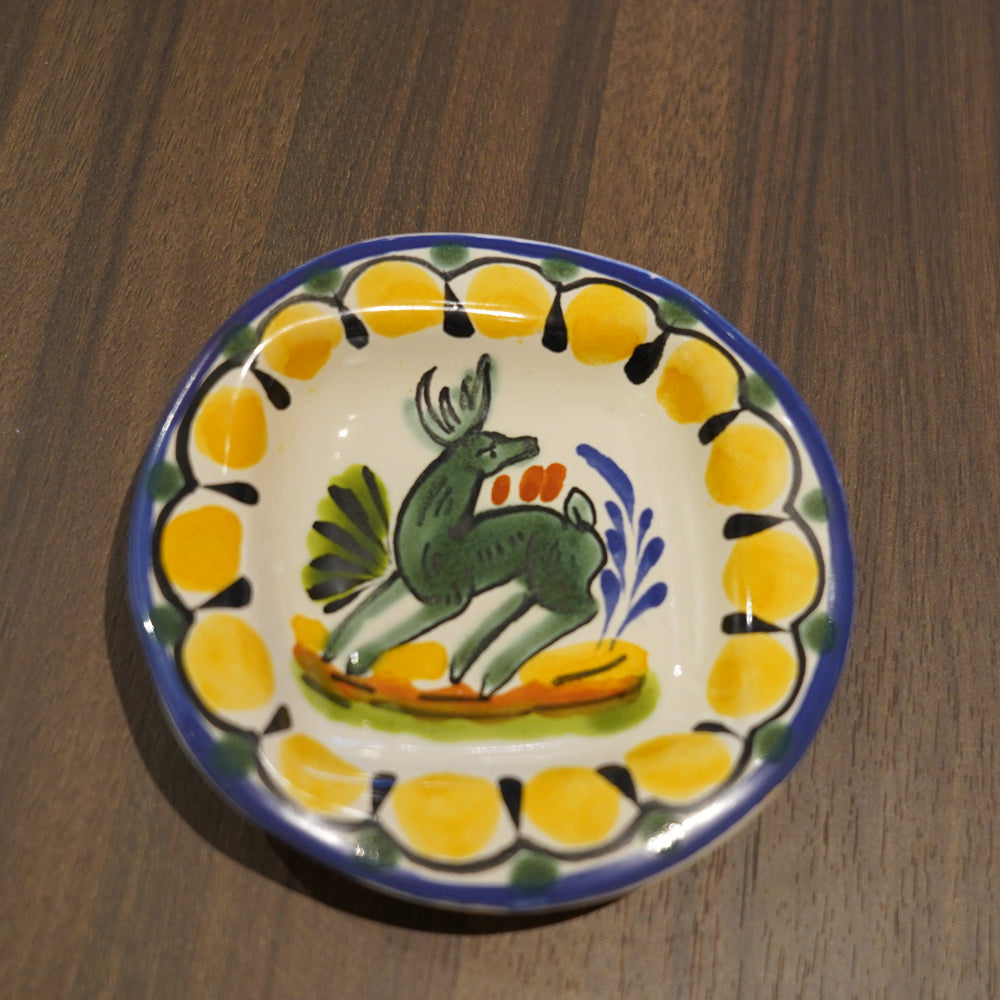 ゴルキー工房で作られた陶器。良質な土が豊富に採れる事から、各地で陶芸が盛んに行われているメキシコ。魅力は独特の色使いと手書きで絵付けされた素朴さ。メキシコの人間国宝とも呼ばれるゴルキー・ゴンザレスの陶器は熟練の職人にのみ許されたリスの毛を使った筆で絵付けが行なわれており、繊細な絵柄が魅力です。美しい色彩とあたたかな味わいのそのマジョリカ焼は、天然素材だけを使用し、すべて手作りで丹念に作られたものです。