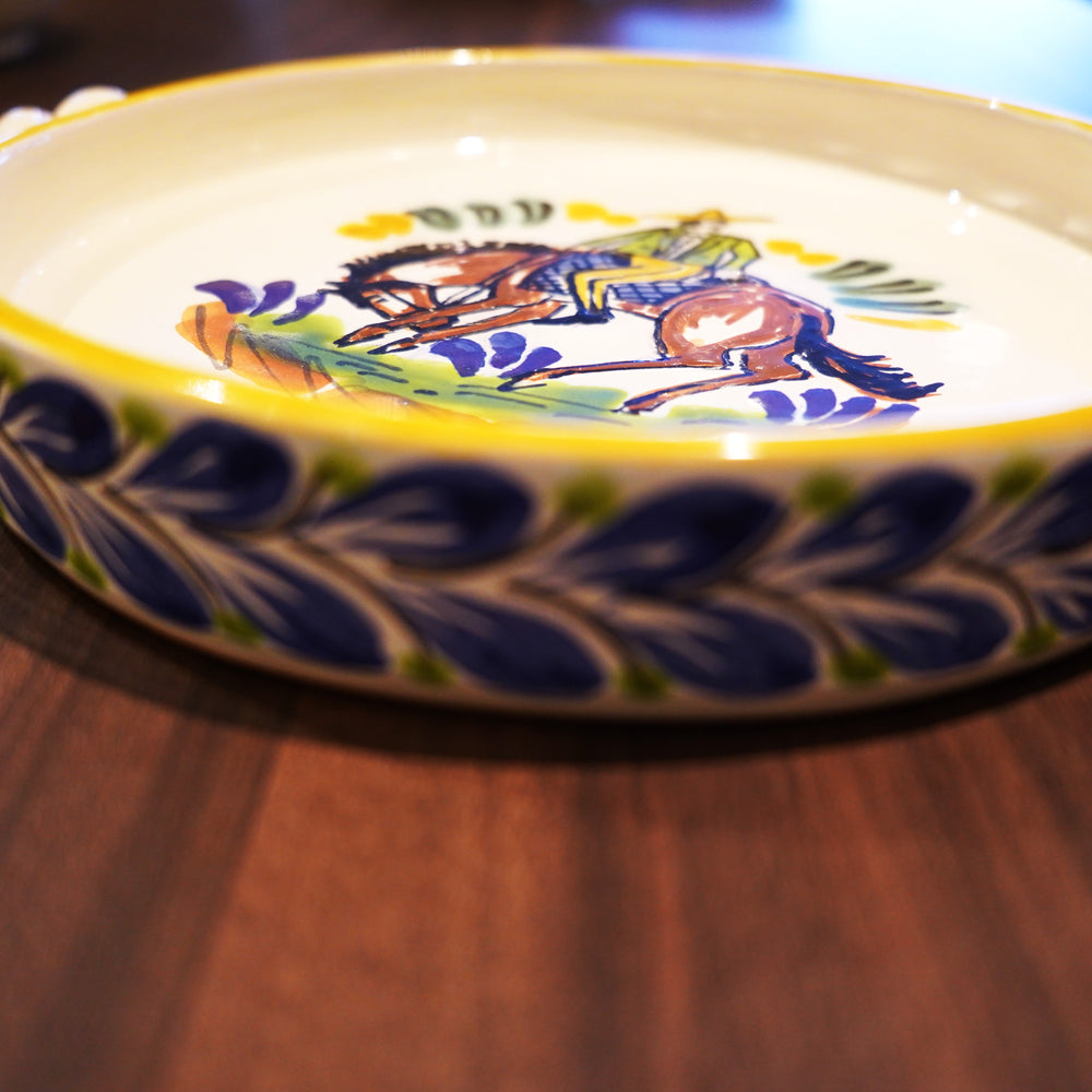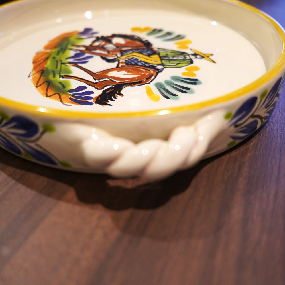 ゴルキー工房で作られた陶器。良質な土が豊富に採れる事から、各地で陶芸が盛んに行われているメキシコ。魅力は独特の色使いと手書きで絵付けされた素朴さ。メキシコの人間国宝とも呼ばれるゴルキー・ゴンザレスの陶器は熟練の職人にのみ許されたリスの毛を使った筆で絵付けが行なわれており、繊細な絵柄が魅力です。美しい色彩とあたたかな味わいのそのマジョリカ焼は、天然素材だけを使用し、すべて手作りで丹念に作られたものです。