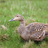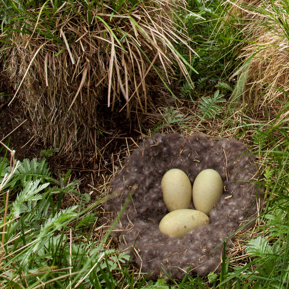 人の手で育てられる通常のダックと違ってアイダーダックは野生の鳥であり、しかも国際保護鳥なので成鳥には人間が触れることも出来ません。アイダーダックは繁殖期になると胸の綿毛(ダウン)を巣に敷き詰めてフカフカのベッドを作り、そこに卵を産み、ヒナを育てます。そして子育てが終わった巣から、ダウンを採取させてもらうのです。