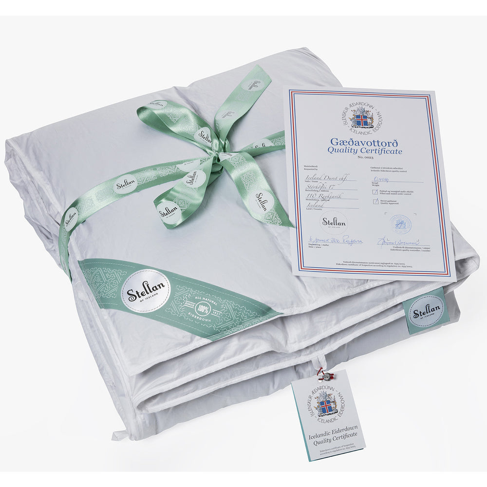 私ども小野ふとん店が紹介させて頂いているのは、アイスランド【ステラン社】からの直接買い付けの羽毛です。アイスランド国内で製造されるステラン社のアイダー羽毛ふとんには、アイスランド政府の厳しい基準を満たしていることを証する認定書が添付されています。