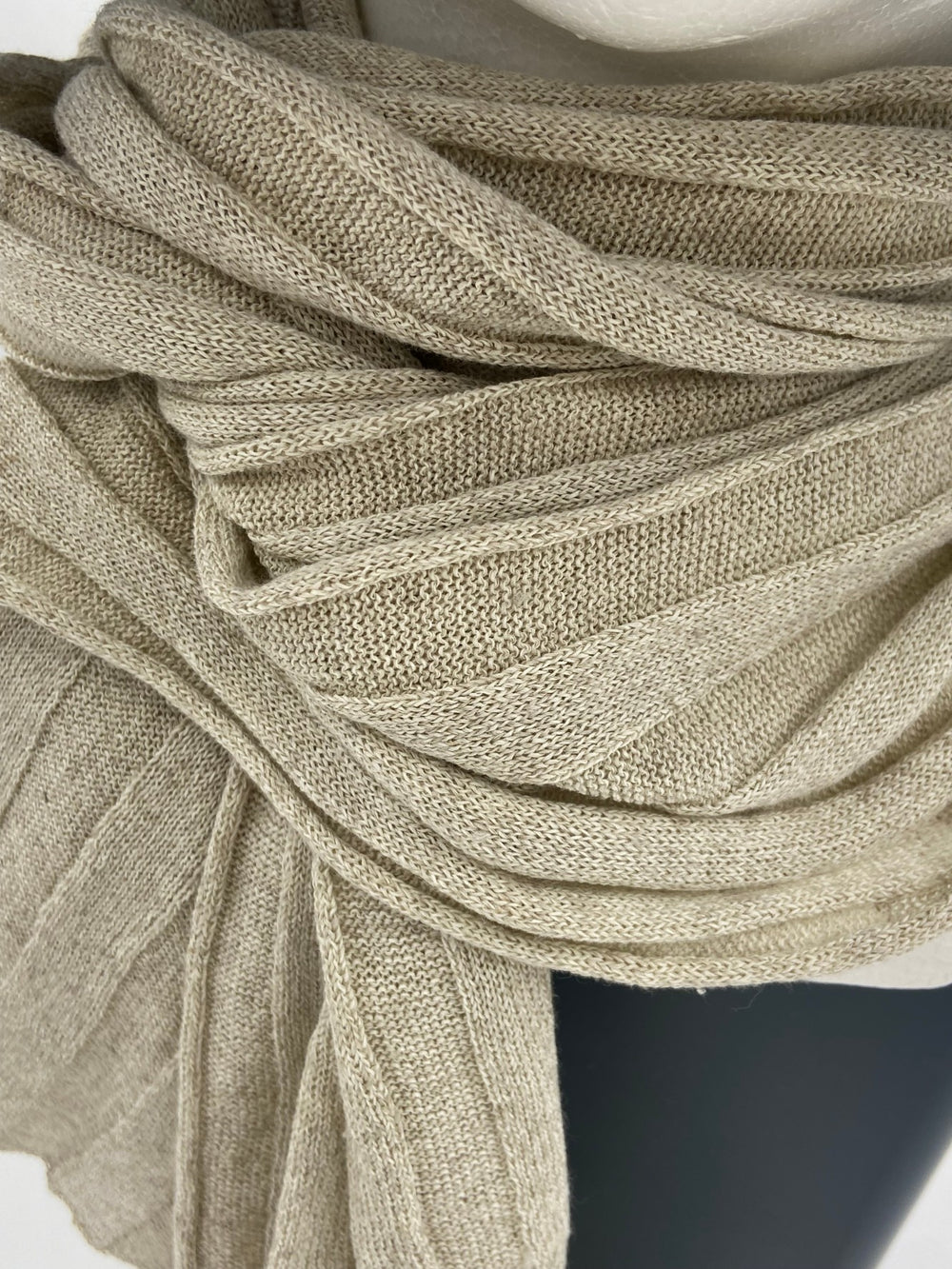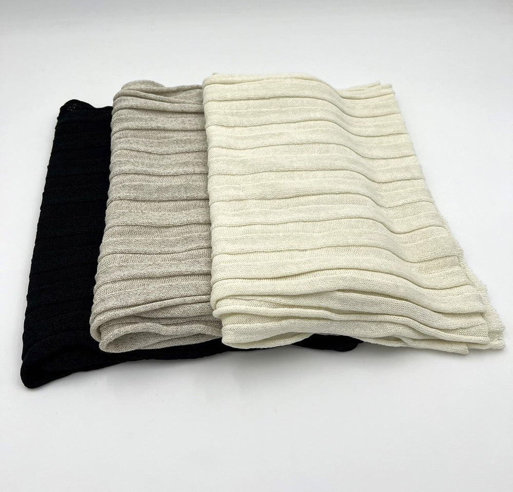 従来品より編地の密度を上げ薄くて、軽く、柔らかなニットストールです。ササワシと麻が織りなす涼やかな肌触りがとても心地良いです。