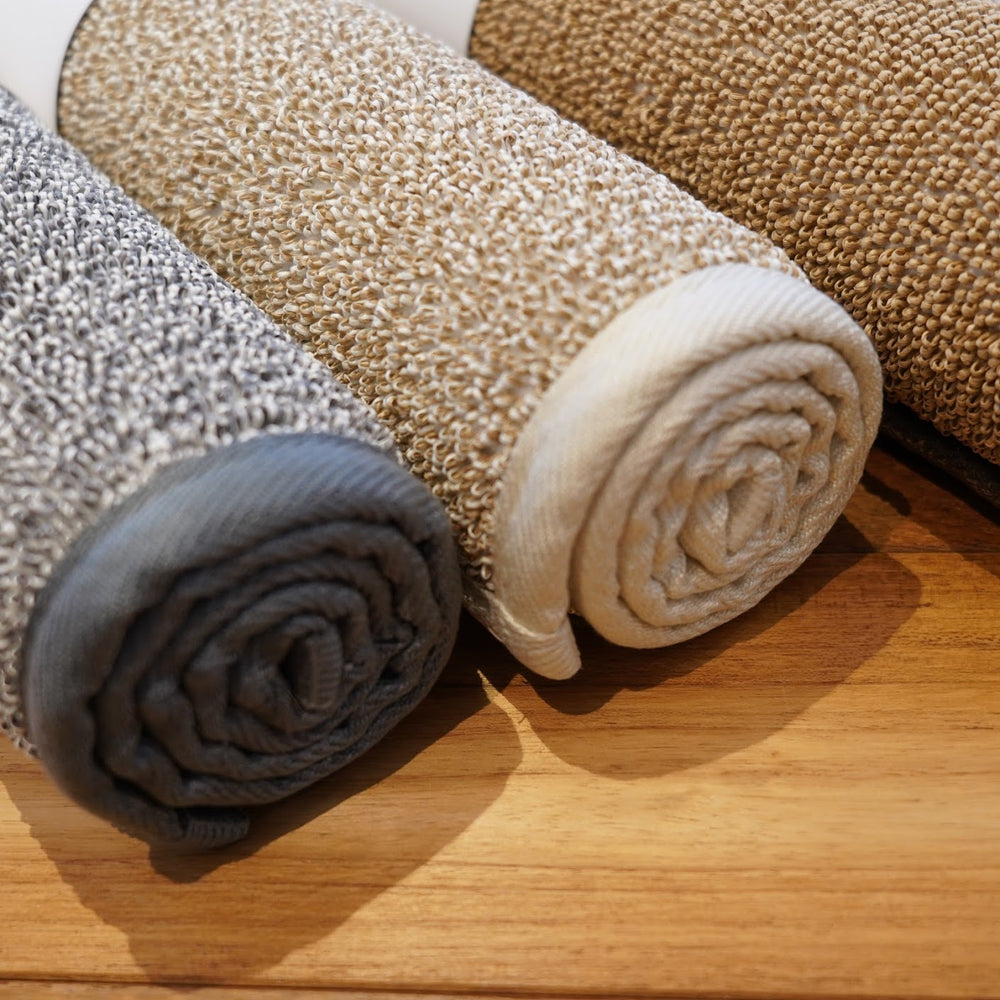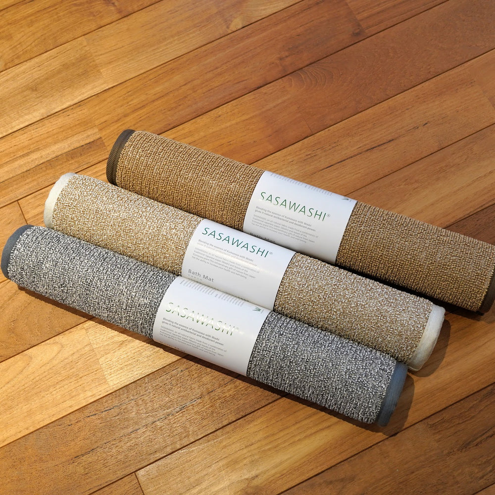 ササワシをパイル状にすることで生まれるしっかりとした硬めのコシが、足裏を刺激しながら湯上りの水分をさっと吸収します。給水量は綿の約2倍で水分の後戻り性が低く濡れてもべとつきません。きまざさの抗菌防臭効果で清潔さも保ちます。ひんやりサラサラ気持ちいい肌触りでお風呂上がりもさらっと快適です。また、バスマットとして以外でもペットの夏場のくつろぎマットとしてや、車のシートとしても活躍してくれます。
