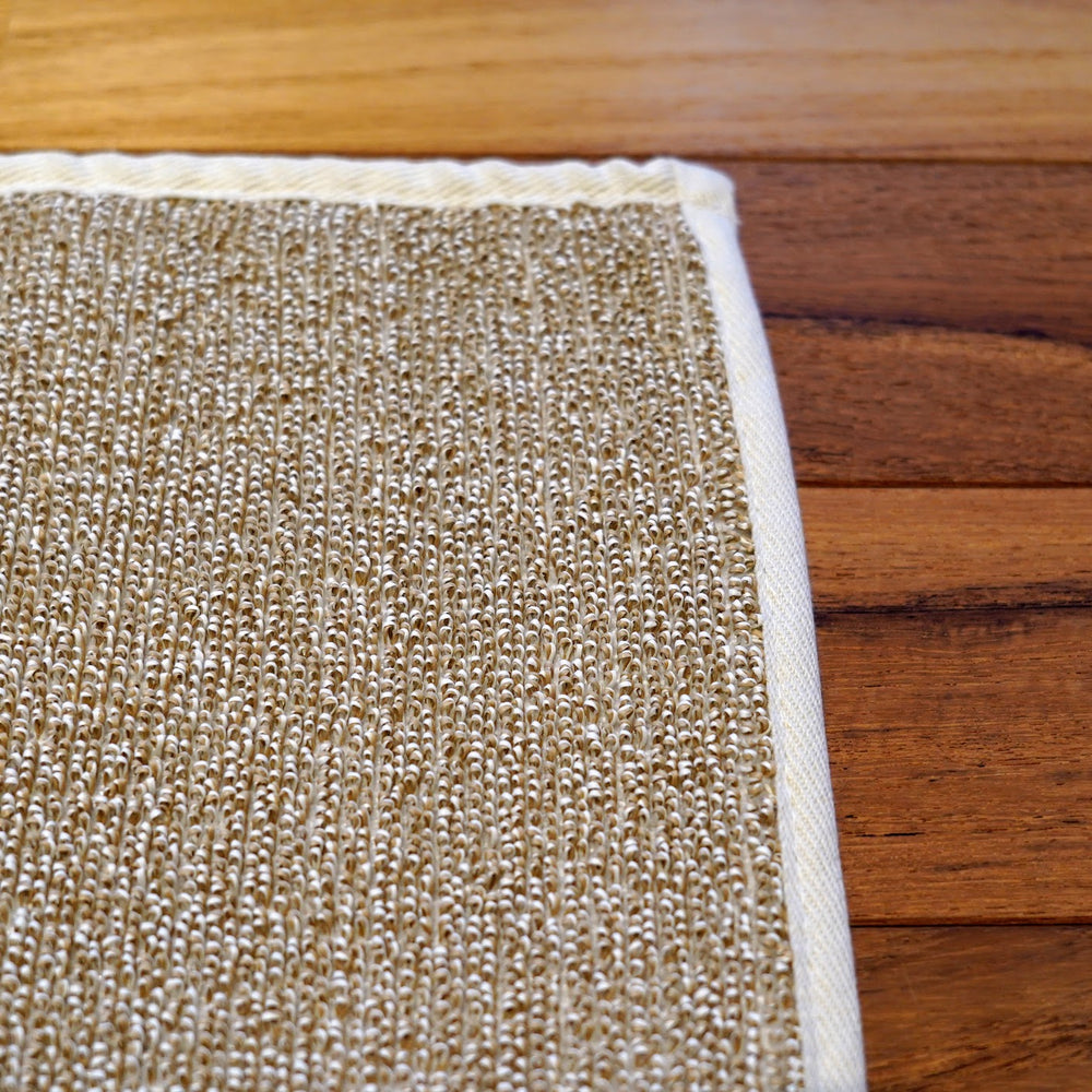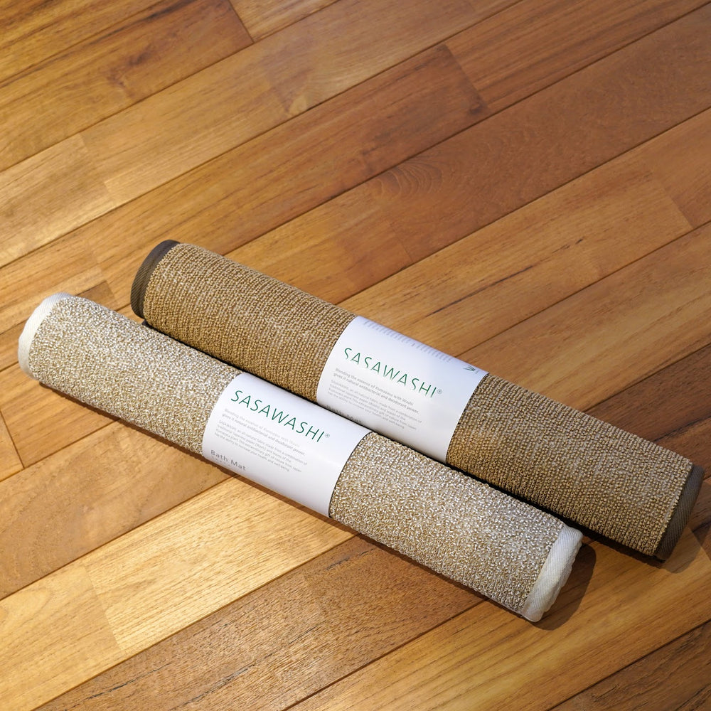 ササワシをパイル状にすることで生まれるしっかりとした硬めのコシが、足裏を刺激しながら湯上りの水分をさっと吸収します。給水量は綿の約2倍で水分の後戻り性が低く濡れてもべとつきません。きまざさの抗菌防臭効果で清潔さも保ちます。ひんやりサラサラ気持ちいい肌触りでお風呂上がりもさらっと快適です。また、バスマットとして以外でもペットの夏場のくつろぎマットとしてや、車のシートとしても活躍してくれます。