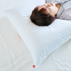 柔らかすぎてぺちゃんこにならないよう、中心部には硬めで弾力が強いフェザー(羽根)を採用し、頭が沈み込んでしまうことを防ぎます。でも、外側はフワフワのグースダウン(羽毛)がたっぷりなので、包み込まれるような心地よさ!大きなサイズなので、肩から乗せて使うのもオススメです。