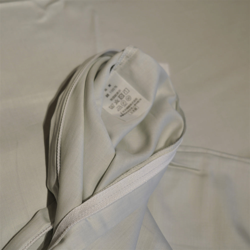 世界三大コットンのひとつ、スーピマ超長綿を極細80番手糸でサテン織りした美しい光沢ととろけるような滑らかな肌触りが特徴のカバーです。重量もシングルロング掛けカバーで約600gと一般的な綿ブロードに比べ35%も軽くドレープ性の良さから肌に吸い付くようにフィットするため体温を逃さず冬の羽毛布団には最適です。