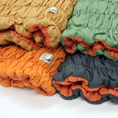 【お取り扱いについて】開封時、軽く天日干しをすることにより気持ちよくお使いいただけます。抗菌作用があるので、日頃のお手入れは裏返して天日干しに。お洗濯は手洗いで、形を整えて干して下さい。※シャーリングのゴム糸は紫外線に弱いので直接日光には当てないでください。※ドライクリーニング・漂白・タンブラー乾燥・アイロン不可。