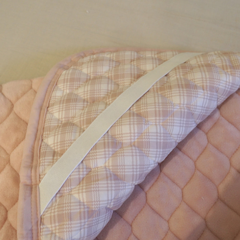 四隅にゴム付きでとりはずしが簡単です。遠赤外線わた使用でとっても暖かいです。