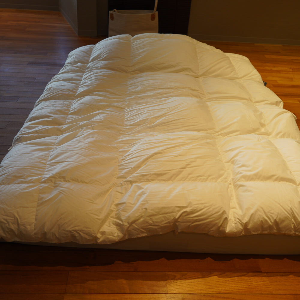 側生地の汚れや痛みを防ぐため、カバーを掛けて使用してください。カバーはこまめに洗う事が大切です。月に1~2回カバーを掛けたまま陰干しします。干すことで湿気を取り保温性やかさ高、弾力性を高めます。殺菌効果を考えて直射日光に当てる場合は長時間の干しっ放しは避けましょう。取り込む際にたたくのは厳禁です。ダウンを痛めてしまいます。保管する際は湿気や熱を逃がしてから保管してください。ビニールケースなど通気性の悪い物は避けてください。ふとん圧縮袋はかさが戻らなくなるので使用しないでください。収納時は羽毛ふとんが一番上になるように収納しましょう。
