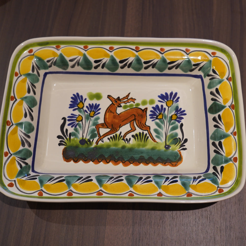 ゴルキー工房で作られた陶器。良質な土が豊富に採れる事から、各地で陶芸が盛んに行われているメキシコ。魅力は独特の色使いと手書きで絵付けされた素朴さ。メキシコの人間国宝とも呼ばれるゴルキー・ゴンザレスの陶器は熟練の職人にのみ許されたリスの毛を使った筆で絵付けが行なわれており、繊細な絵柄が魅力です。美しい色彩とあたたかな味わいのそのマジョリカ焼は、天然素材だけを使用し、すべて手作りで丹念に作られたものです。