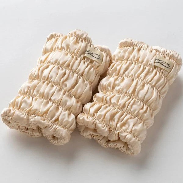 「シルク足首ウォーマー」は表裏ともにシルクを使った贅沢な足首丈のレッグウォーマー。