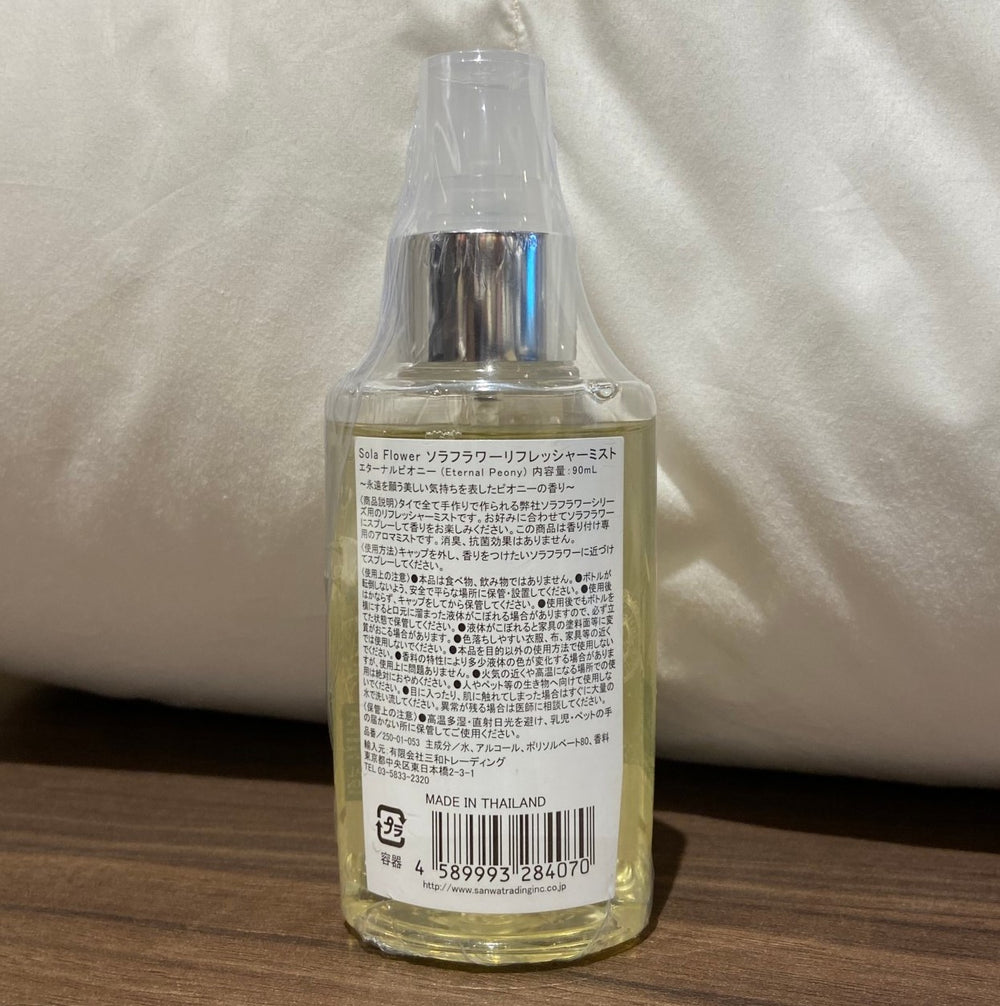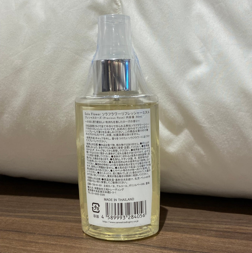 タイで全て手作りで作られるソラフラワーシリーズ専用のフレグランススプレーです。ソラフラワーの香りが薄くなったら、スプレーする事で好きな香りを何度でもお楽しみいただけます。