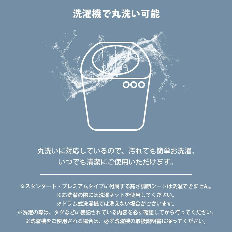 *高さ調節用のウレタンシートは洗えません。必ず外してから洗濯してください。洗濯ネットをご使用ください。