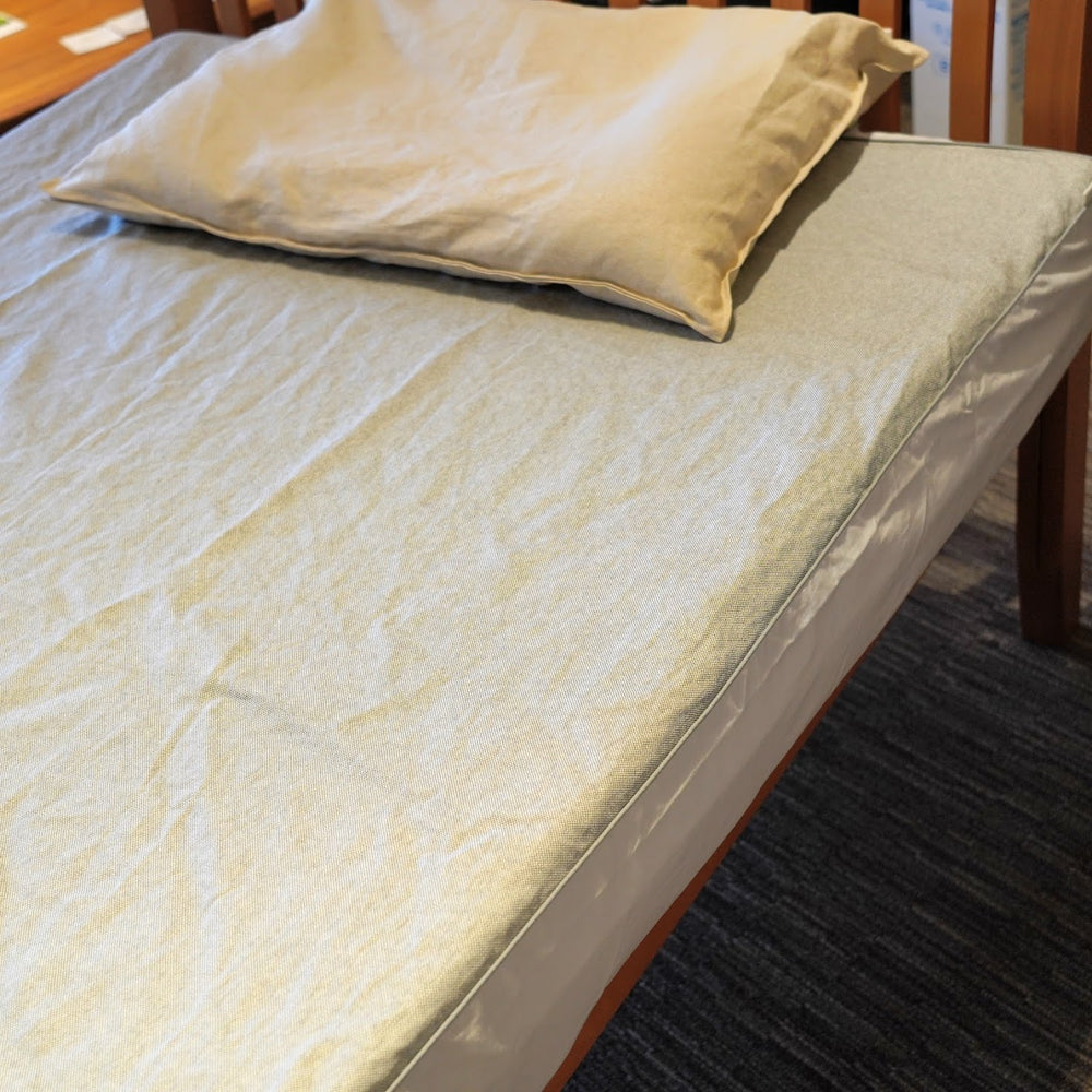 ベッドのマットレスの厚みにフィットするように側面は綿100%素材、全周にゴムが入っておりベッドメイキングがとても楽です。本体部分の生地はササワシ100%でさらさらとして断熱効果が高く、涼しく快適。天然素材なので蒸れない夏場にぜひお使いいただきたいアイテムです。ササワシは毛羽がほとんどなくホコリも発生しにくい素材です。肌に敏感な方やお子様にもお勧めのアイテムです。くまざさには天然の抗菌防臭効果がありますが広いのでベッドルームの消臭にも選ばれています。