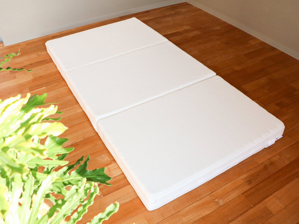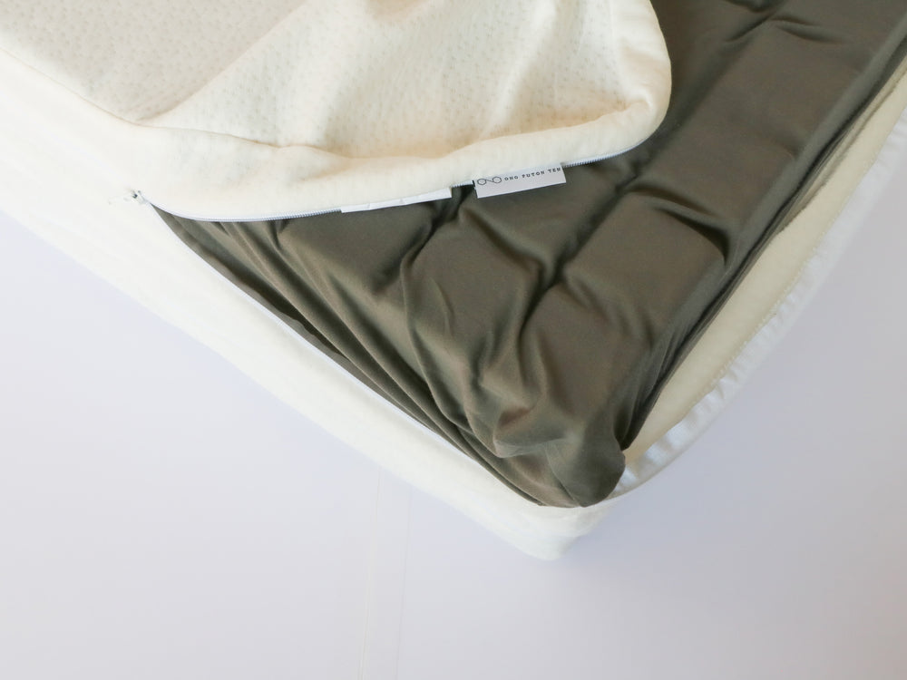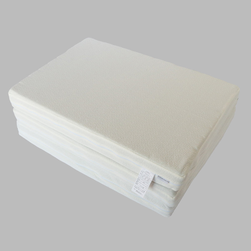 ウレタンを包み込む生地を1枚入れることで劣化を防ぎ、側生地にはウレタンの沈み込みを最大限活かせる中綿無しのニット素材を採用しました。肌触りも心地良さも抜群です。通常のウレタンマットレスの2倍の密度で、耐久性もあり、体をしっかりと受け止めてくれます。