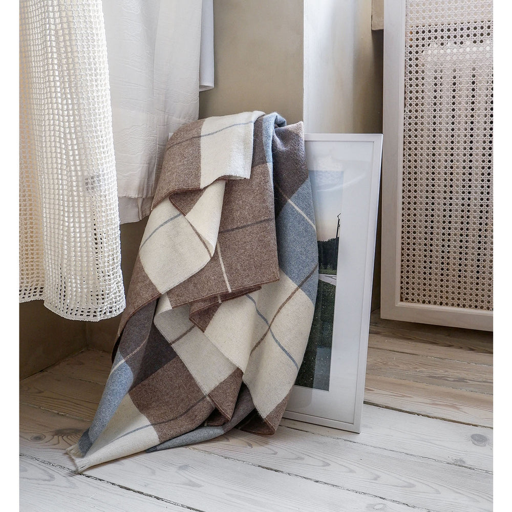 誰もが魅了される、大きなチェック柄のブランケットです。アルパカとウールの組み合わせで、色合いがキリッとした仕上がりのブランケットです。