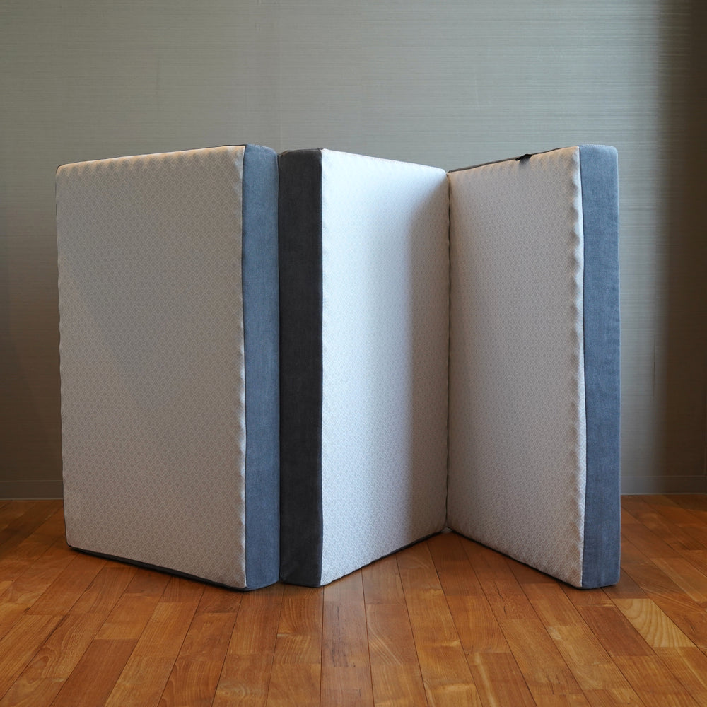 ウレタンフォームマットレスの最大の敵は「カビ」と「湿気」です。睡眠中の湿気はふとんの下に溜まり、そのままにしておくとカビの原因になってしまいます。それを防ぐ一番手軽な方法は毎日風を通すこと。三つ折りタイプなら持ち上げる、壁に立てかける等がしやすく、毎朝簡単に湿気を逃がすことが出来ます。