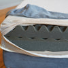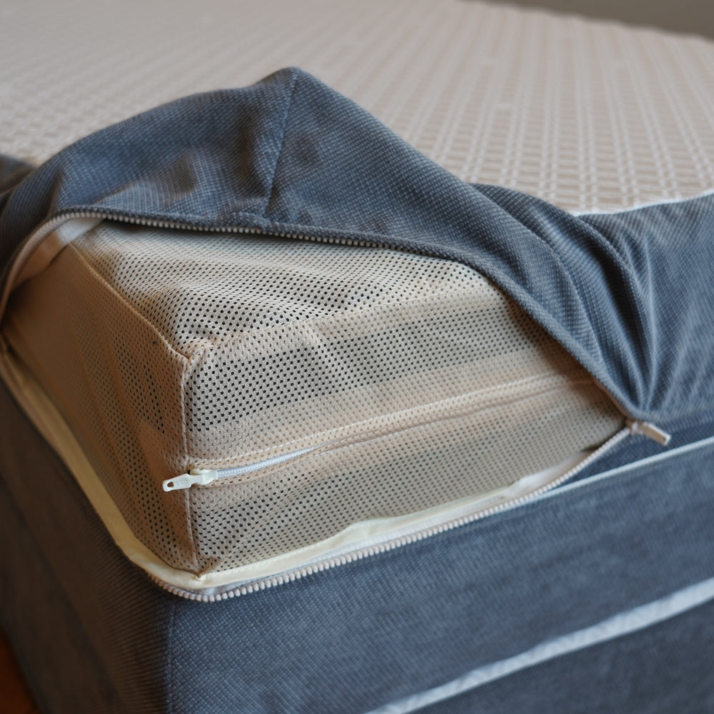 重たい腰部分はふとんのヘタリを一番感じやすい部分です。ウレタンはへこんでしまうと残念ながら復元させることはできません。しかし三つ折りタイプはウレタンフォームが3つのパーツに分かれており、ヘタったパーツを他のパーツと入れ替えることでヘタリを感じにくく長くお使いいただけます。