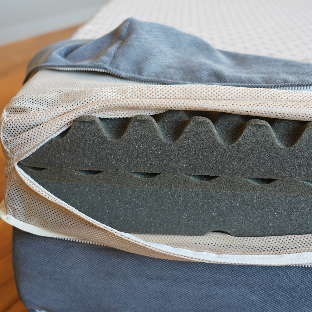 (上層部:高硬度ウレタンフォーム モノグラムスリット加工 中層部:高反発ウレタンフォーム 下層部:高硬度ウレタンフォーム)